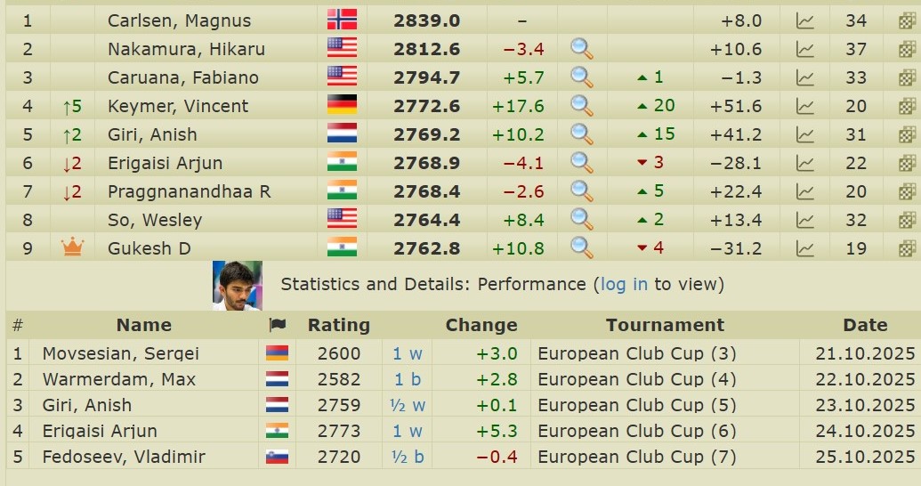 Mistr světa uhrál 4 z 5 bodů s nejvyšší performancí turnaje a lze říct, že právě díky němu si družstvo odvezlo vítězství. Co však zaujme ještě víc? Gukesh jako by cíleně volil klidnější pozice. Uvědomuje si, že potřebuje přidat v koncovkách a poziční hře?