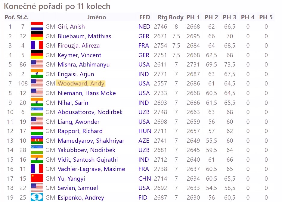 A tak jsem začal Woodwardovy partie sledovat opravdu až tady, na mistrovství USA. A ejhle! Žádná „údržba“, žádná bázeň před velkými jmény, žádné remízky sem a tam, jak to někdy vídáme třeba u Mishry. Po tomhle turnaji si troufám říct, že sen mnoha Američanů konečně získává obrysy. Najít „druhého Fischera“ – rodilého Američana a budoucí superhvězdu – se možná po více než šedesáti letech začíná naplňovat.