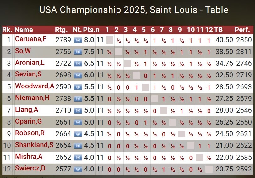 Proto jsem měl po závěru partie proti Wesleymu hned dvě obavy. Zaprvé, jak se bude vyvíjet jeho další bitva druhý den proti Niemannovi, navíc černými. A zadruhé jsem byl zvědav, jak Caruana zapracoval na své psychické odolnosti. Samozřejmě, šlo „jen“ o generálku. Dobře informovaní šachisté a diváci tuší, že nejvážnější zkouškou pro Caruanu na turnaji kandidátů 2026 budou zřejmě střety s Nakamurou, proti kterému se mu dlouhodobě nedaří téměř až osudově.
