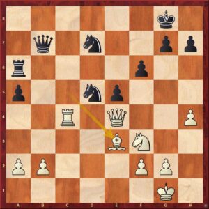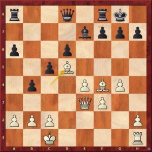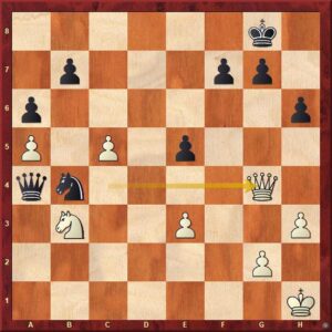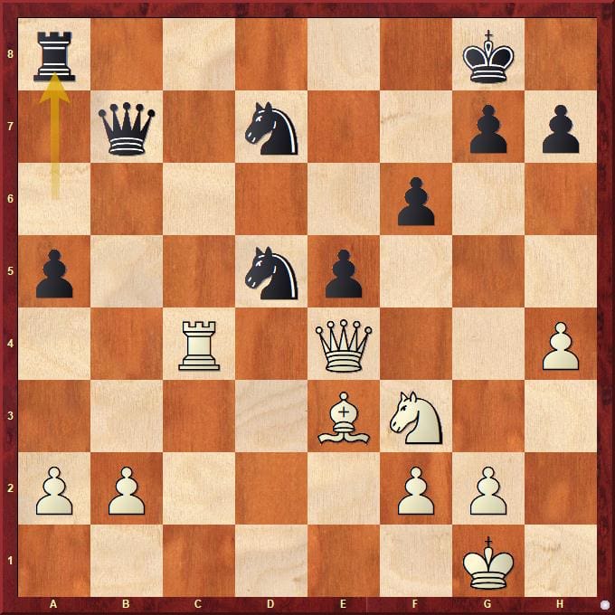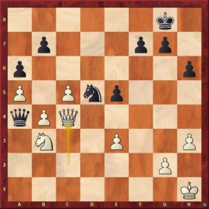 Černý stojí hůře, koho by však napadlo, že v příštím tahu partii vzdá?! Následovalo 26…Va8?? (další do sbírky taktických hrubek).