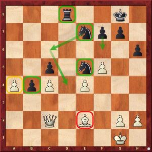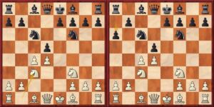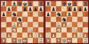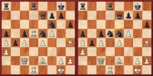 Spojené diagramy demonstrují poziční oběť dámy černého. Zamysleme se, kolik materiálu černý za dámu získá a v čem spočívá její náhrada. Nu a samozřejmě: bylo podle vašeho mínění odvážné rozhodnutí řeckého velmistra korektní?