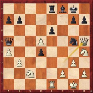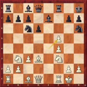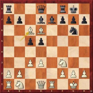 V dalším průběhu Nodirbek „anglickou legendu“ dokonale přehrál. Z diagramu níže můžeme vypozorovat, kterak černý v onom 11. tahu pokračoval, ovšem zatím nevíme, zda jeho rozhodnutí bylo optimální…