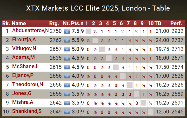 Prohlížíme-li si tabulku a partie Nodirbeka Abdusattorova z turnaje London Classic, napadne nás i tento idiom! Po slabších výsledcích a zmařených šancích na postup do turnaje kandidátů se Nodirbek objevil v Londýně v plné zbroji. Nejenže vyhrál uzavřený devítikolový turnaj s náskokem dvou bodů před Firouzjou, ale připsal si i další udivující výkon: šest výher v řadě!