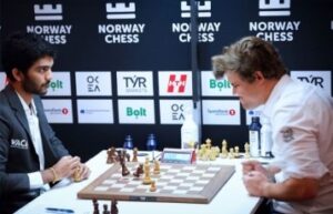 vydechl Gukesh po své partii proti Levonu Aronianovi. Nebylo lze nevzpomenout na slavnou Magnusovu ránu do stolu