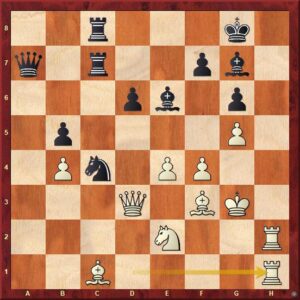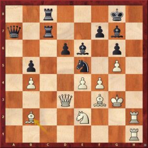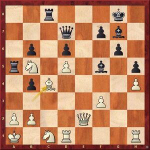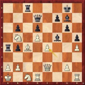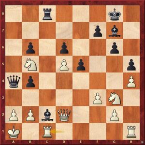 Za obětovanou figuru inscenoval černý drtivý útok proti nepřátelskému králi. Jak ukazuje chronometráž, zde se Praggnanandhaa zamyslel na bezmála půlhodinu, přesto se mu však nepodařilo najít cestu k udržení dynamické rovnováhy.