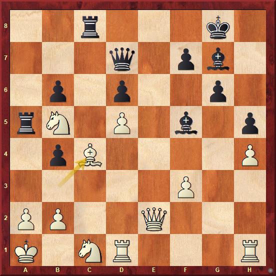 Unaven dlouhou obranou - a zřejmě i v propočtu některými přehlédnutými tahy - dopustil se Praggnanandhaa v již horší pozici tahem 23.Sc4? rozhodující chyby.