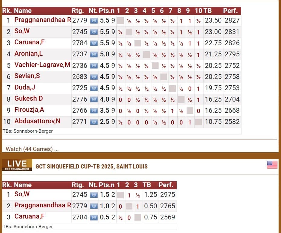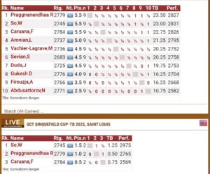 Zatímco si nevzpomenu, kde krom březnového pražského festivalu nebral nebo alespoň nedělil Rameshbabu Praggnanandhaa první místo, u Gukeshe jde o druhý turnaj, v němž neuhrál ani 50% bodů. Co víc, v Saint Louis prohrál sice dvě partie, ale celkově stál na prohru v pěti!