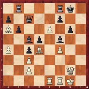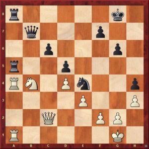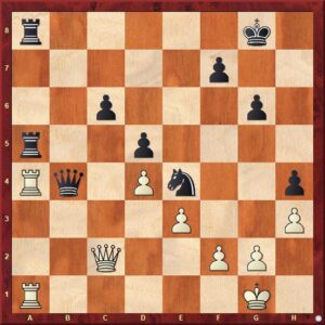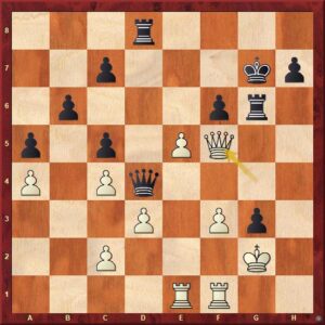 černý uvěznil protivníkovu dámu na dámském křídle. Kalkuloval s tím, že po 28.Da7 Db5 využije její absenci v boji k zahájení útoku proti nepřátelskému králi. V partii nakonec čtrnáctiletý turecký supertalent nenašel nic lepšího, nežli vrátit kvalitu po 28.Vxa6?? bxa6 29.Dxa6 jistě si dobře vědom, že je zle a pozici s pěšcem méně zřejmě neudrží.