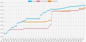 V přehledném grafu ze stránek rating.fide.com vidíme Yagizův trvalý vzestup výkonnosti. Současný rating 2 669 ještě nereflektuje zisk dalších přibližně 18 bodů, které nabral ve Wijk aan Zee.