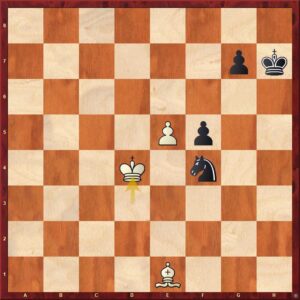 „Černý stojí dočista na výhru.“ Toto hodnocení by mělo být zřejmé snad jakémukoli hráči, dříve od řekněme druhé výkonnostní třídy výš, dnes zhruba od 1700 ELO bodů. Pravda, materiál na šachovnici dovede sečíst snad i šestileté dítě, to ale ještě nemusí vědět, že bílému v pozici stačí, s mírným zjednodušením řečeno, odevzdat všechen svůj materiál za oba černé pěšce. Dva jezdci zpravidla nematí 🙂 .