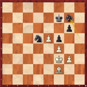 Po Yagizově pěkné poziční oběti kvality (zdůrazním, že partie by si zasloužila nejen podrobný rozbor, ale i samostatný článek) vznikla nakonec koncovka s dvojicí střelců proti věži a jezdci. Objektivní dynamická rovnováha však dávala v „živé partii“ zřejmou iniciativu černému.