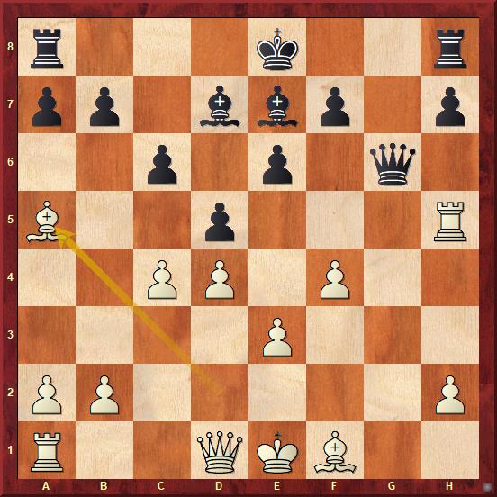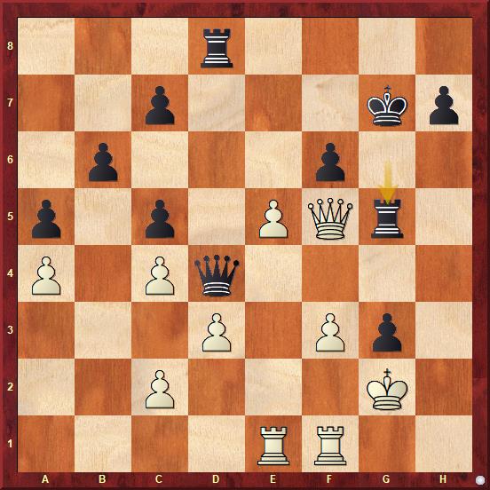 černý uvěznil protivníkovu dámu na dámském křídle. Kalkuloval s tím, že po 28.Da7 Db5 využije její absenci v boji k zahájení útoku proti nepřátelskému králi. V partii nakonec čtrnáctiletý turecký supertalent nenašel nic lepšího, nežli vrátit kvalitu po 28.Vxa6?? bxa6 29.Dxa6 jistě si dobře vědom, že je zle a pozici s pěšcem méně zřejmě neudrží.