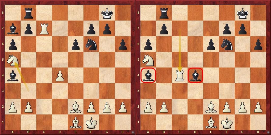 V partii Erdogmus vs. Gukesh mohl dokonce černý prohrát! Na šachovnici se totiž vyskytla pozice, která se snad mohla proměnit v kombinaci roku! Abych příliš čtenářům, kteří tuhle partii neviděli, nenapovídal, přidám níže rovnou diagramy se zadáním. Po 27…Sa6