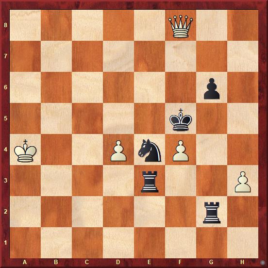 Ne tak mistr světa! Je těžké rozlousknout, jaké úvahy jej vedly k tomu, že přešel do teoreticky remízové koncovky, když pokračoval 41…Jhxf4+?? 42. gxf4 Jxf4+ 43.Kd4=.