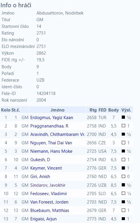 Přesto máme dvě jistoty. První: Nodirbek Abdusattorov vyhrál další turnaj s převahou. Druhá: zajímavější a napínavější bitvy se hledají jen těžko.