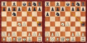 Z didaktických důvodů jsem v pravém diagramu otočil barvy. Aronjanův výpad Dh5 se nyní rovná Dh4, pěšce a3 „najdeme“ na a6.