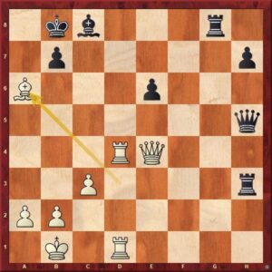 Remízová kombinace s ideou přímého zničení pěšcového krytu. GM Daniel King ve svém videu velmi správně poukazuje na motiv kombinace tím, že „vyčervenil“ všechny černé těžké figury. Ano, motivem kombinace je skutečně přečíslení útočných sil bílého v blízkosti nepřátelského krále. Černí těžkooděnci jsou sice na jedné straně od svého krále vzdálení, což by pro jejich vůdce nemuselo dopadnout dobře, jenomže se také podívejme, zda nejsou oni sami schopní zaútočit na bílého monarchu! Nebo alespoň zabránit části bílé armády, aby pustila ze zřetele ochranu první řady.