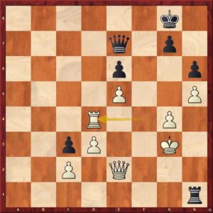 , počemž Wei Yi sebral věž 57.Jxg2 a partie skončila!