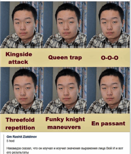 Wei Yiho neproniknutelný výraz — doslova pokerová tvář — už před časem inspiroval jeho „kolegy“ k nejrůznějším vtípkům. Práci na taktických úkolech (doufám, že příjemnou 🙂 ) nyní trochu odlehčím ukázkou „lidové tvořivosti“, nad kterou jsme se tehdy s kamarády srdečně zasmáli.