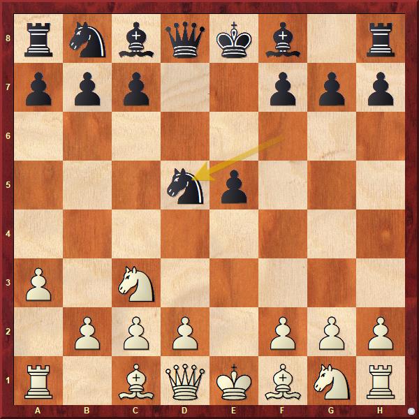 Též ostřílený polský supervelmistr (nemylme se, jeho maximální rating se v roce 2017 vyšplhal až ke 2 750!) si po tříminutovém přemýšlení vybral 3…d5, aby po 4.exd5 Jxd5