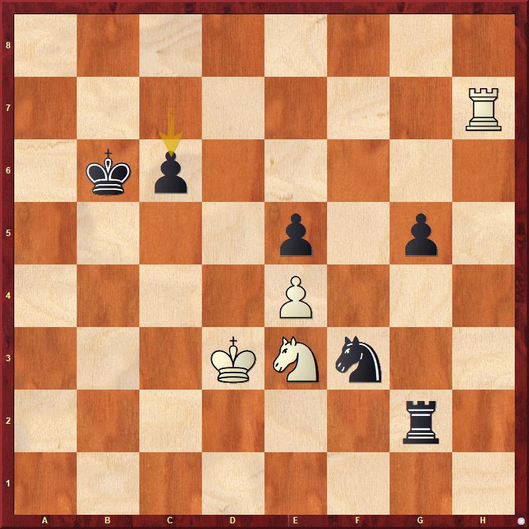 vynutit po 24…Vxf4 25.Jxc5 Vxg4+ 26.Sg3 Sxf1 27.Kxf1 Vf8+ 28.Kg2 b6 následující koncovku.